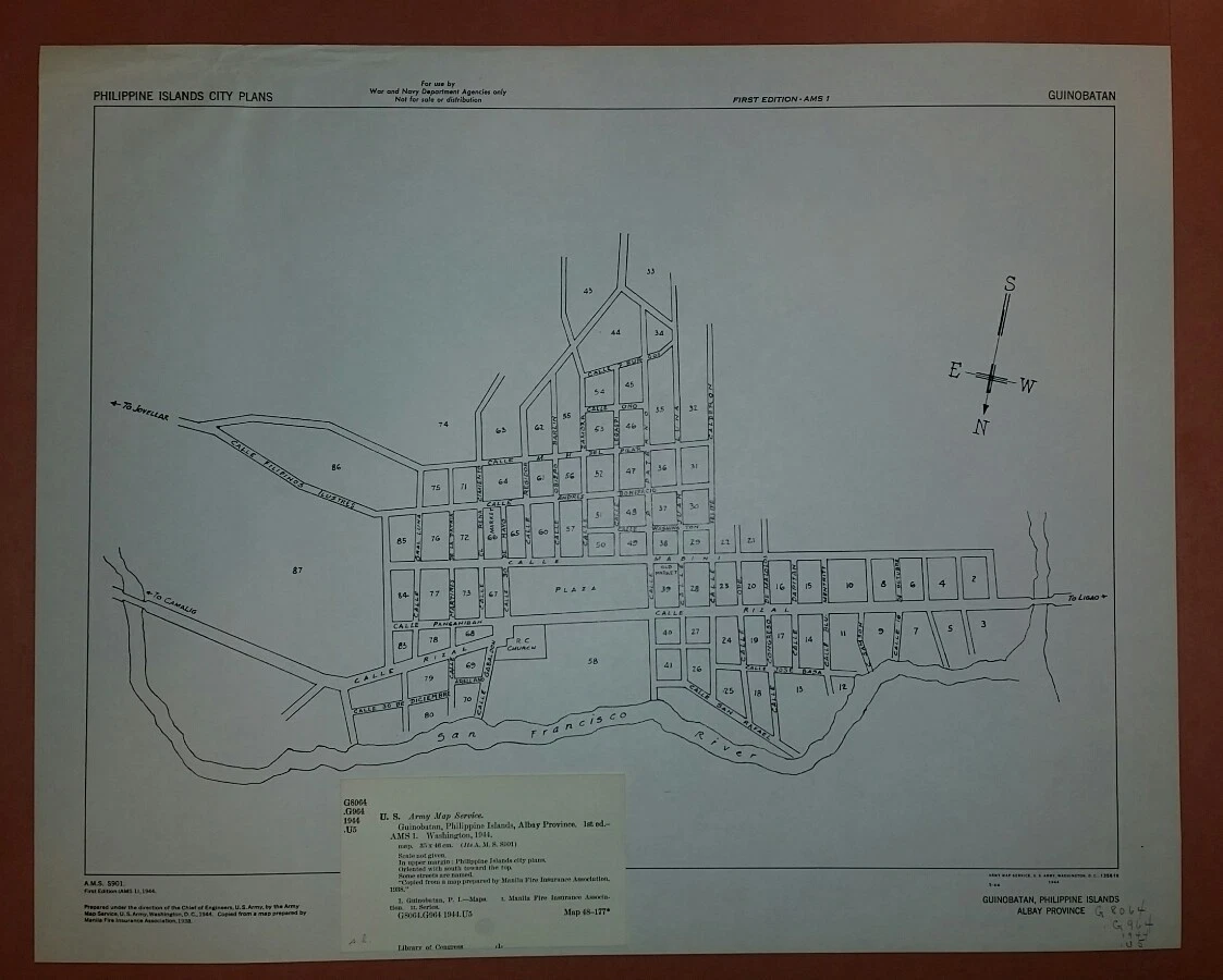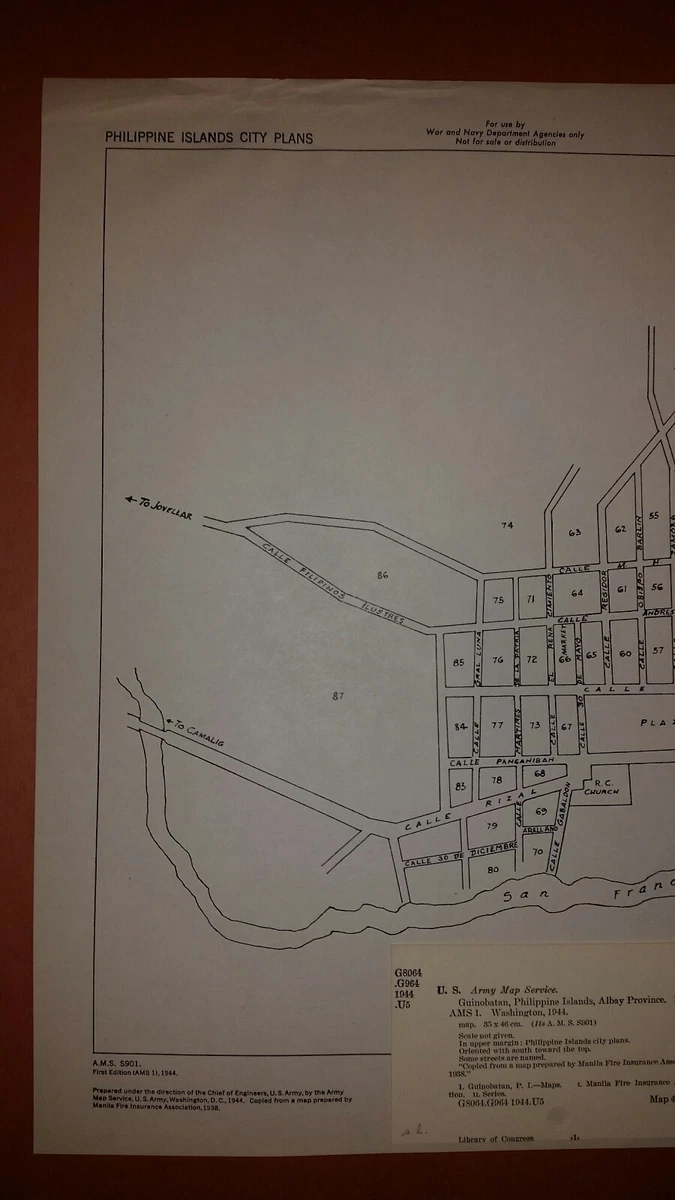 1944 US Army Map City Plan of Guinobatan Albay Philippines WW 2