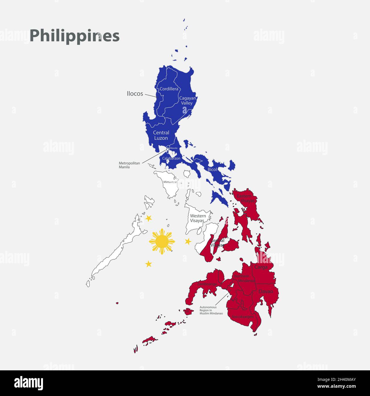 Map Of The Philippines In The Colors Of The National Flag Stock